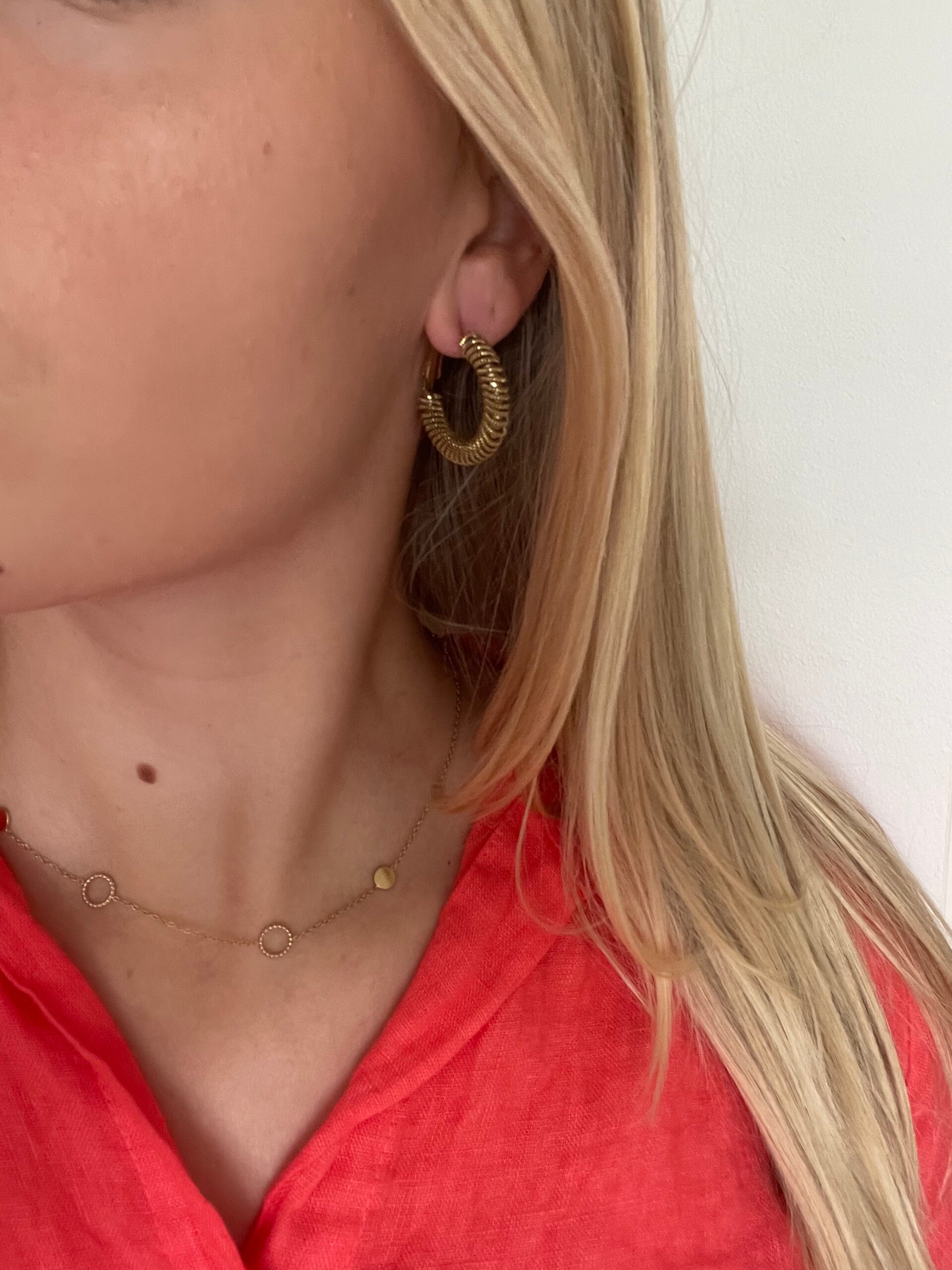Deze gouden ringen zijn een musthave voor jouw sieradencollectie! Het straalt elegantie en luxe uit! De oorbellen zijn stainless steel.