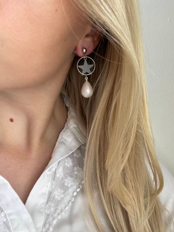Deze zilveren oorbellen bestaan uit een knopje met een grijze ster en een lichtroze parel. Het zijn super leuke oorbellen voor de zomer en is niet te missen in jouw collectie!