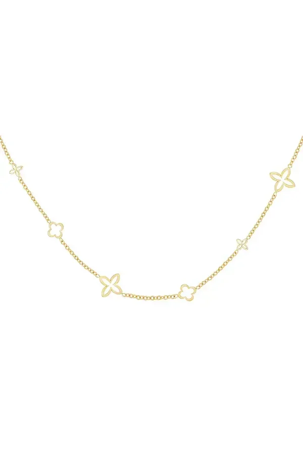 Minimalistische kettingen zijn niet alleen essentieel voor jouw sieraden collectie, maar ook het perfecte cadeau voor iedere vrouw. Ook deze gouden ketting is tijdloos en stijlvol. De ketting is gemaakt van rvs en is versierd met open klaver bedels in verschillende vormen.