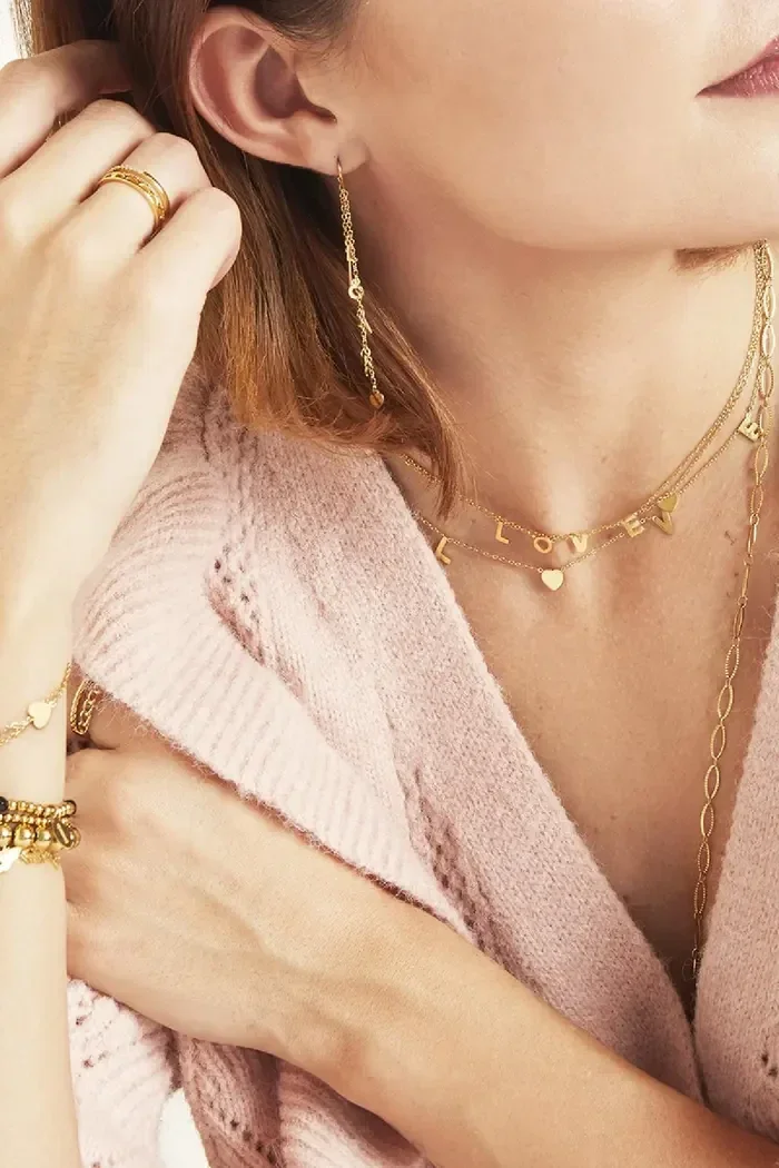 Trendy stainless steel ketting in goud kleur met dichte letters LOVE.