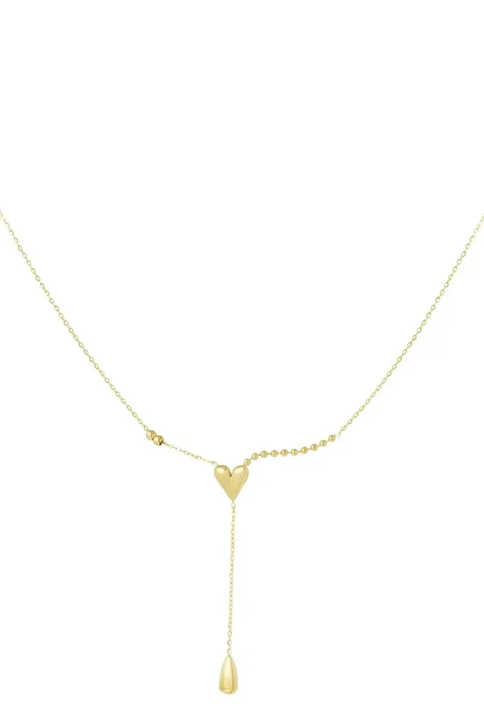Verliefd op stijl? De Heart Drop ketting in goud is de perfecte manier om je liefde voor mode te tonen! Met een prachtige combinatie van een hartje en een elegante drop hanger, brengt deze ketting een speelse flair en een vleugje romantiek in elke outfit.