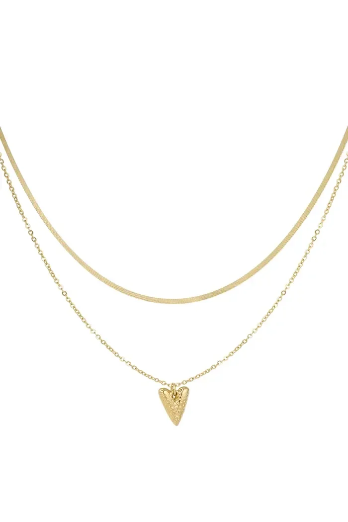 Deze stijlvolle ketting is gemaakt van hoogwaardig roestvrij staal (stainless steel), wat ervoor zorgt dat het niet verkleurt. De ketting heeft een elegante gouden kleur en een lengte van 39 cm, met een extra 5 cm verstelbare ketting voor een perfecte pasvorm. Een tijdloos sieraad dat elke outfit complimenteert.
