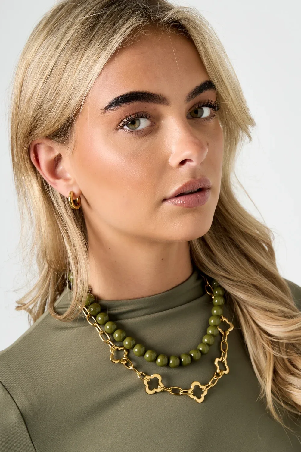 De Lucky Clover Chain Ketting is een korte ketting van 40–45 cm die mooi hoog in de hals valt.