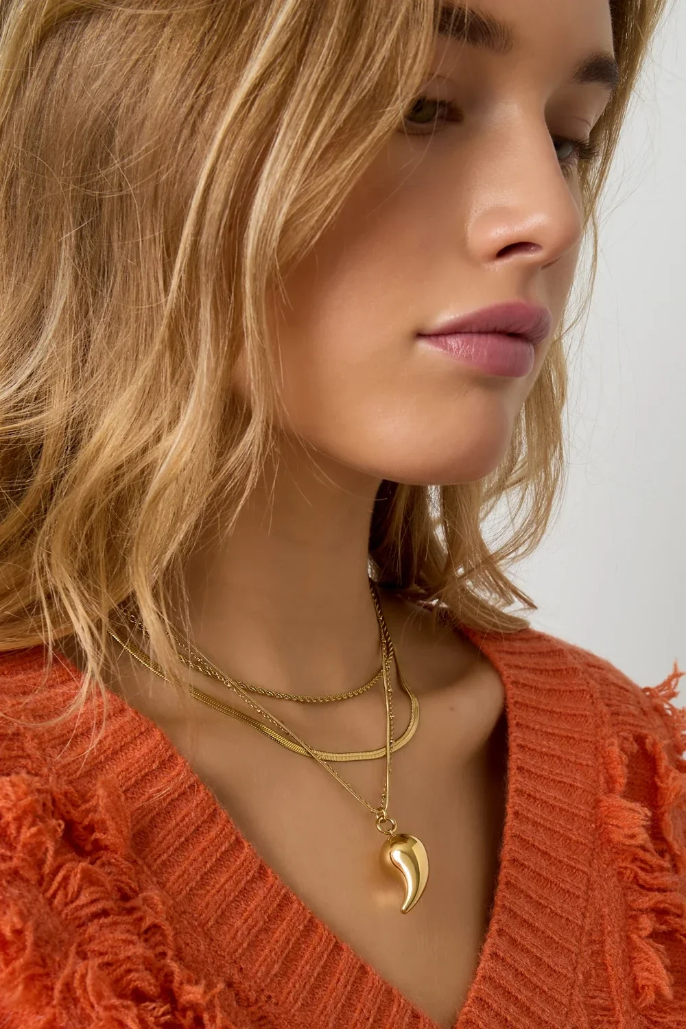 Draag de Droplet Hangerketting voor een minimalistische stijl of combineer het met andere kettingen voor een speelse look.
